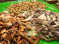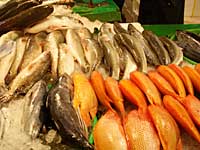 觀光魚市裡的燈火燦爛與熱鬧暖溢,與外面相較又是種明顯的對比落差。觀光魚市裡,絡繹不絕的人潮與魚販叫賣聲,找回了小時候傳統市場裡的熟悉親切,那似乎是整潔超市裡所無法體會言喻的。