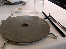 餐廳裡是純然西式的簡約設計風格,但鋪著白色方巾的桌上,餐具除了刀叉之外,卻多了雙筷子。混搭中西的餐具擺設,透露著也許將會是天馬行空的混搭式食物組合。也許Bo Innovation不會是那種中規中矩的正規餐廳,至少,發現某人染著多色頭髮、戴著暗色眼鏡與半邊耳環、穿著無袖背心並大剌剌露出臂上「廚魔」中文字刺青時,想把這種同時帶著重金屬的裝扮與「主廚」相連結,似乎就是種摻了些異想天開的戲謔不切實際。不過,眼前的這家餐廳就是如此。