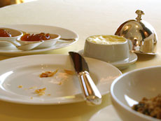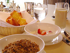 用餐時的弔詭來自於食物本身,來自於相較之下顯得不是太驚豔卻是價格不斐的食物本身。似乎,唯一能夠補償食物味覺的,是居高臨下的美麗海景、星級餐廳裡照顧無微的服務、晶碧奢華的佈置與餐具,以及緩慢慵懶渡過的漫長早晨。不過,反正早餐就是早餐,簡單明白,不用太花俏,期望也不用太高。