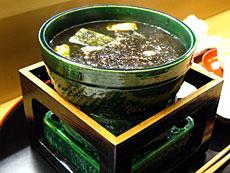 接續的「蓋物」,豆腐渣覆著花椰菜,滿佈著黃橙色的海膽,那種花椰菜的嫩脆,混雜著豆渣的粗糙,再加上溫熱海膽的鮮滑海味,是道有趣深邃引人入勝的菜餚。至於混著白蘆筍、日本生薑以及豆腐;鱈魚肝的冷し鉢其實並未有任何印象深刻。而「強肴」加了豆腐與紫菜的海鰻魚湯,倒是在寒冷的天氣裡讓人增添了些許的溫暖(至於那個海鰻,以前都是在海裡拍,現在竟然進了肚子裡…)。