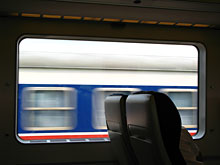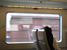 飛馳高速的火車,急騁拖著窗外的走馬風景、拖著窗外的新舊交錯。窗外時空顯現出的單調冷淡,恰與手上「時尚旅遊」雜誌上充滿紫色寧靜魅力的照片形成強烈對比。但此時,那種近在咫尺的眼前陳舊不協調,似乎比照片裡的遙遠夢幻,更多了幾分真切實際。