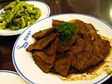 忘了上一次在鄧師傅用餐究竟是多少年前,但滷牛腱的滋味依然沒變。小盤裡切成薄片的牛腱肉整齊排列著,表面灑些蔥花、淋些帶了甜味的夠味醬汁。滷煮得軟嫩卻依然帶有牛肉嚼勁的牛腱薄片,最讓人暢快滿足的是夾上鋪陳肉片下的綠油鮮甜青蔥。刀工細緻的濃綠蔥花,看來就誘人垂涎,而塞滿嘴裡的蔥花鮮脆搭配著牛腱肉的鮮嫩與醬汁的獨特甜味,肯定是讓人無法忘卻的美妙滋味。