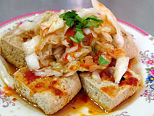 據說被稱做榕樹下米苔目的街邊小店,只有老舊簡單的屋簷桌椅加上小麵攤,確有著流轉不息的人潮。喜歡台東米苔目的清爽不厚重,再加上肉燥柴魚的飄香四溢。其實是第一次品嚐的米苔目小店,卻是老媽從小學開始吃了四、五十年的傳統古早味。齒模店隔壁原來叫做「林家臭豆腐」的小店,有著同樣不絕的絡繹饕客,也是記憶了超過二十年的深刻滋味。比較起來,口感其實不如潭子臭豆腐,不過,內外酥脆的特殊口感,卻也是種風味獨特。