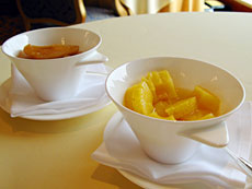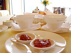 用餐時的弔詭來自於食物本身,來自於相較之下顯得不是太驚豔卻是價格不斐的食物本身。似乎,唯一能夠補償食物味覺的,是居高臨下的美麗海景、星級餐廳裡照顧無微的服務、晶碧奢華的佈置與餐具,以及緩慢慵懶渡過的漫長早晨。不過,反正早餐就是早餐,簡單明白,不用太花俏,期望也不用太高。