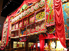 至於粵劇文物館裡的偌大戲台,甚至複製而來的佛山祖廟老戲台,將人帶進粵式戲曲的繽紛世界。對於那種傳統戲曲其實不是太感興趣,不過卻是喜歡環繞在逼真多彩的「假戲棚」邊恣意漫步,藉著擬真佈置,窺視著戲班的日常生活。而黃金時裳特展裡一件件鑲上Christian Dior、Pierre Balmain及Hubert de Givenchy的1950年代貴婦服飾,將人帶回舊時歐式時尚生活裡。那些或許是設計師親手打版製作的手工服飾,除了反映著當時的女性時尚外,似乎也讓人對早已成為名牌的設計師名字,增加了些認識,也少了些距離、多了些親切。