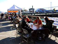 而清晨的城市,即便仍然透著三月的些微涼意,卻已經能感受到七月的加州陽光。步向Pier 2,清朗湛藍的天空高映襯著舊金山灣的波光粼粼,海鳥優雅滑翔流連在延伸橫跨海上的San Francisco-Oakland Bay Bridge間。而跟著日幕一同開啟的早市小店,找得到嫩綠可口的新鮮蔬菜,也有沐浴陽光享用悠閒早餐的早起民眾。大概,就得從如此的慵懶愜意裡開始怡人城市的每一天。