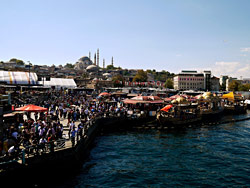 水平面升起的蜿蜒起伏地形赭紅瓦舍密集滿覆,遠方山丘的墨綠翠巒迭起輕籠著柔白薄霧,從上空遠眺伊斯坦堡,是種密集壯闊卻又充滿童話夢幻般的存在。印象裡的伊斯坦堡,應該是鄂圖曼式房舍簇擁的舊時興味,穿插著偌大無比的伊斯蘭教清真寺,流露些中東的停滯凝結古意,再摻雜點曾經不可一世卻已逝去的帝國落日餘暉。實際到訪殷期已久的城市,幸好不全然是想像中的古老,除了原有期待之外,也多了海畔城市的活力奔放與摩登現代。 晨起,在帶點舒適微涼的金色朝陽裡,造訪城市歷史的曾經。