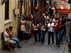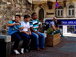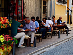 不確定魚市場邊聚滿餐廳的小巷是否因為是假日夜晚而喧囂鼎沸,巧遇鄰桌舉辦婚宴派對的新人,以及混雜土耳其與歐陸風的食物加上酒精助興而充滿歡愉。不滿執政者所激發群眾抗議事件而增設的鎮暴警察仍荷槍實彈的大批守候在夜晚的塔克辛廣場(Taksinm Meydani),緊鄰的伊斯提克拉爾路(İstiklal Caddesi)上卻是喧囂熱鬧,小巷裡海鮮餐廳充斥著酒酣耳熱的活力。依舊滿溢著旺盛朝氣的深夜,感受到老城市無比延續的生命力。