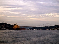 飛機持續往西,一路上伴隨的漆黑夜幕在抵達伊斯坦堡(İstanbul)的破曉時分,白天追上了黑夜。分隔白天與黑夜的鮮明界線,也分割著亞洲與歐洲。歐洲的那一邊,仍然籠罩在絕對的黑。而亞洲這一邊,卻像是摩西奇法般的已然沐浴在金塵灑落的絹麗朝陽裡。