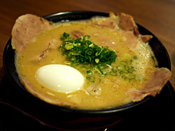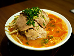 「博多一幸舍」顧名思義提供的是福岡風味的拉麵,細麵搭配上白濁的豚骨湯頭,成了親切熟悉的美味。與記憶裡大部分的福岡拉麵類似,上了桌了碗裡所裝盛的大多只有麵條叉燒青蔥頂多加上顆半生熟蛋的樸素卻又紮實的組合。